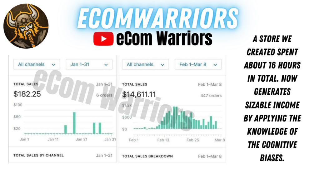 IN NO WAY AM I PROMISING THAT YOU WILL REAP THE SAME REWARDS THAT I REAP ON A DAILY BASIS FROM MY E-COMMERCE STORES. I AM NOT PROMISING THAT LEARNING THE COGNITIVE BIASES OF ECOM WILL CHANGE YOUR LIFE FINANCIALLY. I AM MAKING NO GET RICH QUICK PROMISES OR ADS.